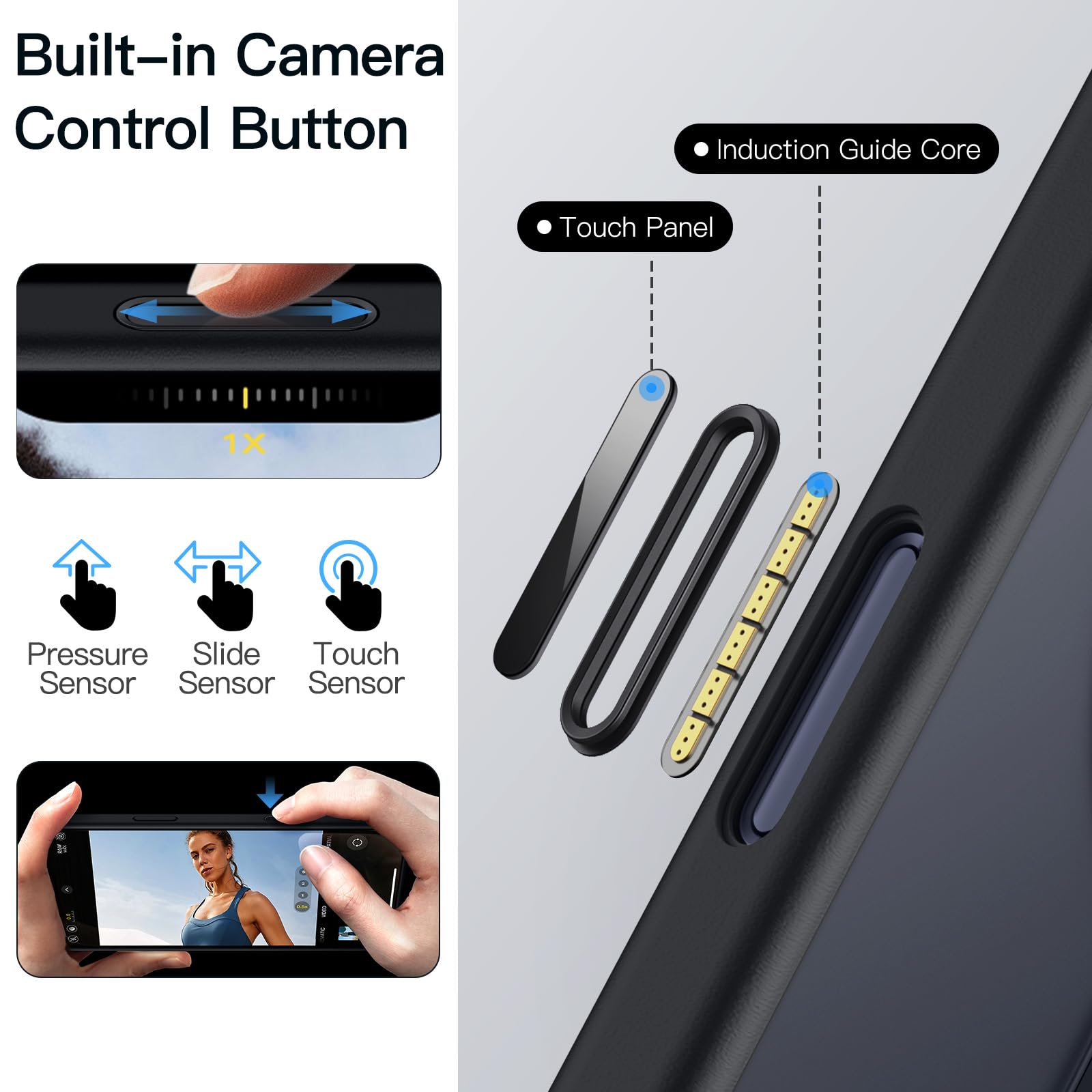[Built-in Camera Control Button] Seamlessly integrated with the original button functions, providing more convenient and quick camera control