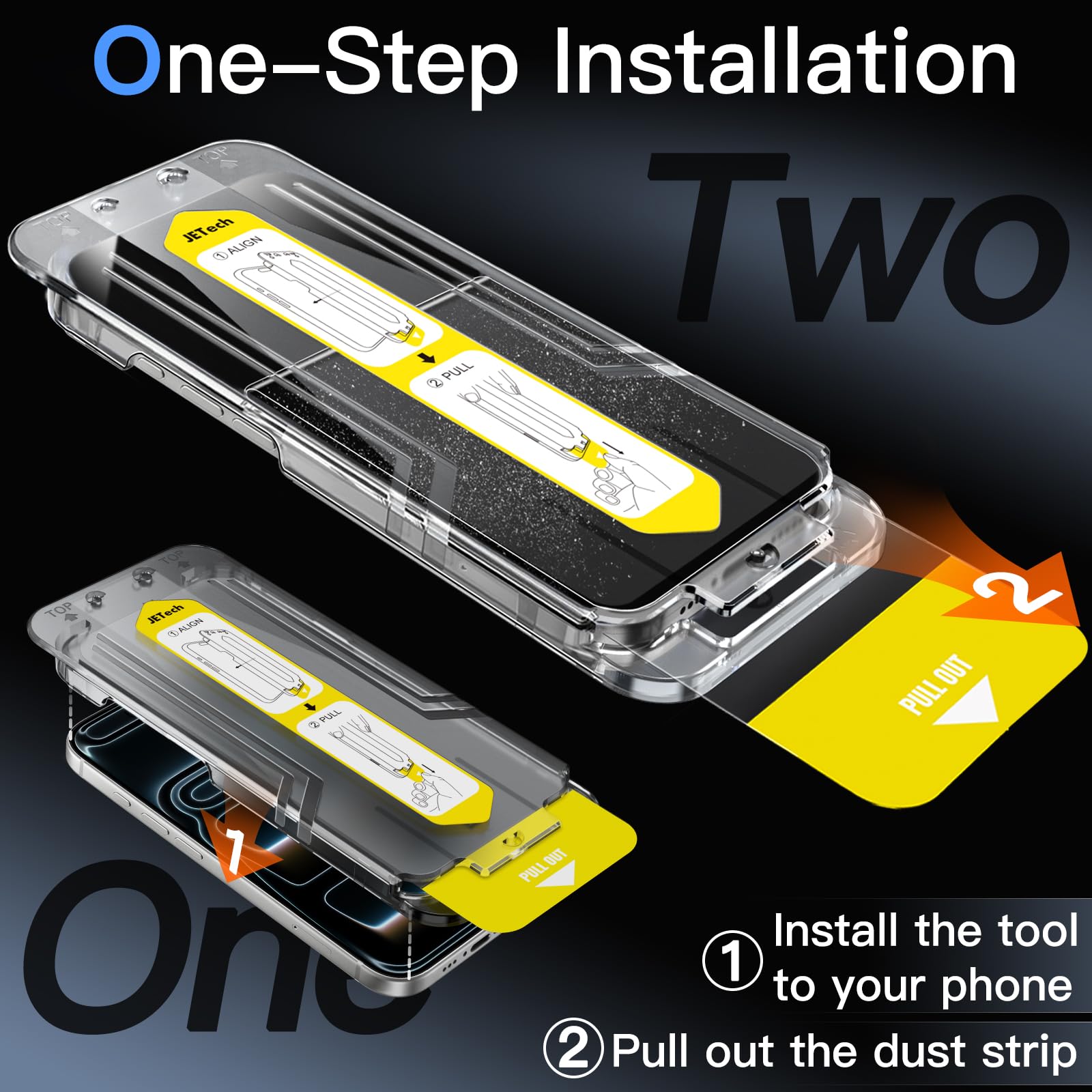 [One-Step Installation] Simply put the alignment tool on the device, pull out the dust strip, the screen protector will align automatically. No more worry about dust and air bubbles