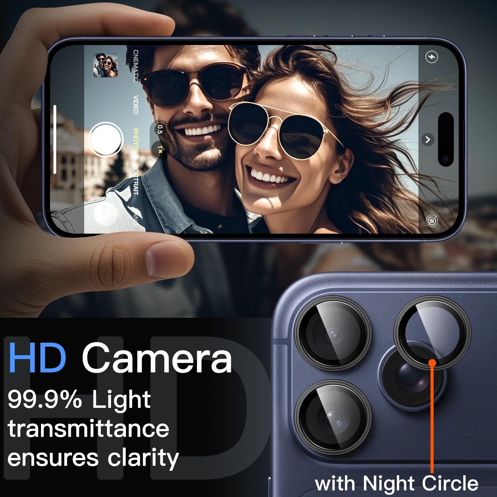 [Comprehensive Protection] Built with premium aluminum alloy metal ring and 9H hardness tempered glass camera lens cover, providing strong protection against unwanted daily scratches and abrasions caused by keys, coins or other sharp objects