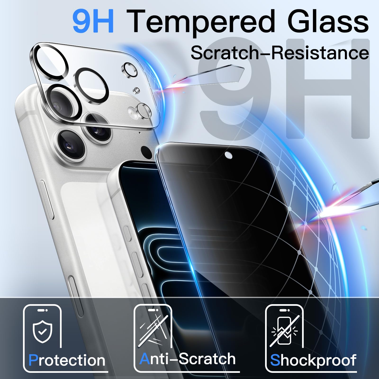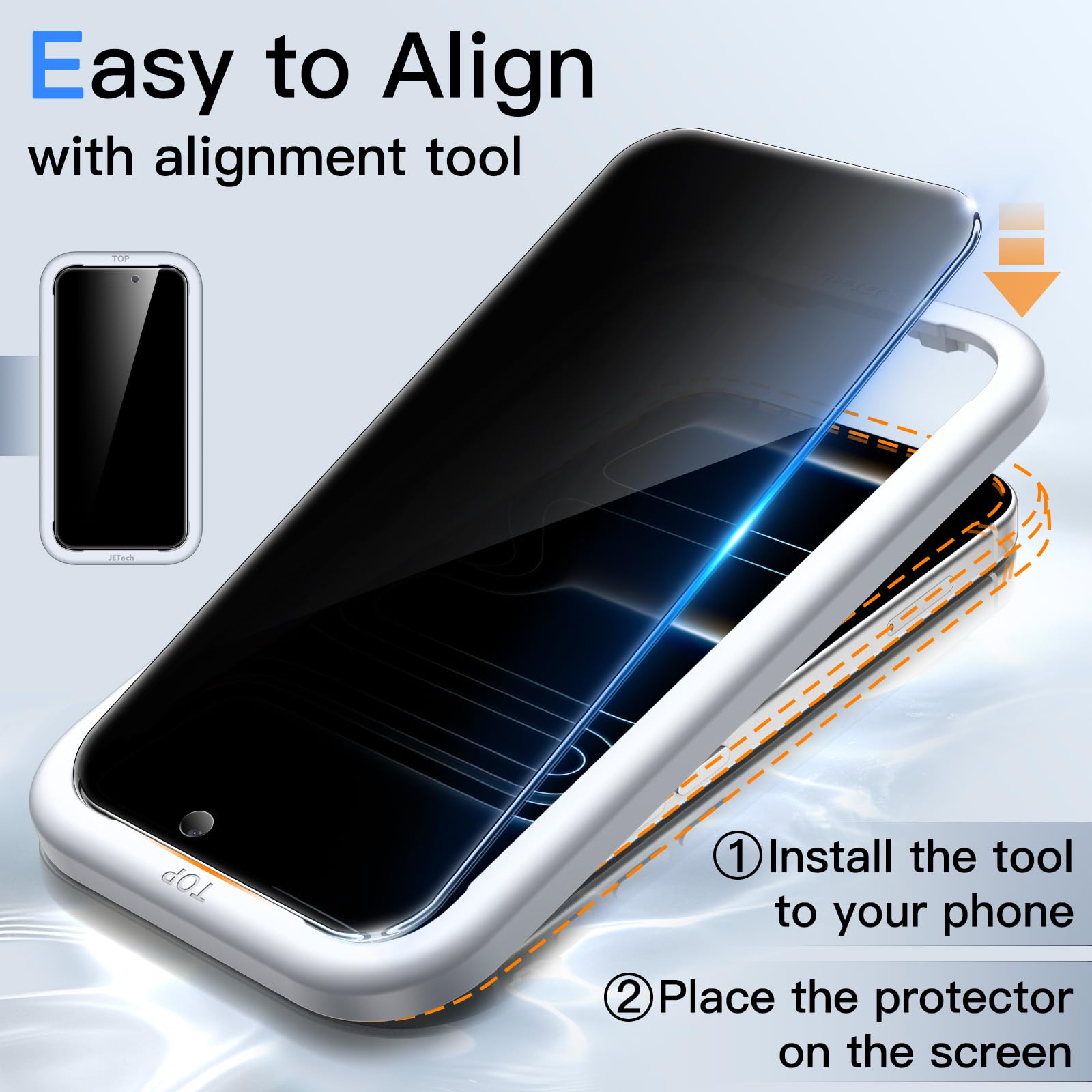 JETech Privacy Screen Protector for iPhone 17 Pro 6.3-Inch with Camera Lens Protector, Anti-Spy Tempered Glass Film, Easy Installation Tool, 2-Pack Each