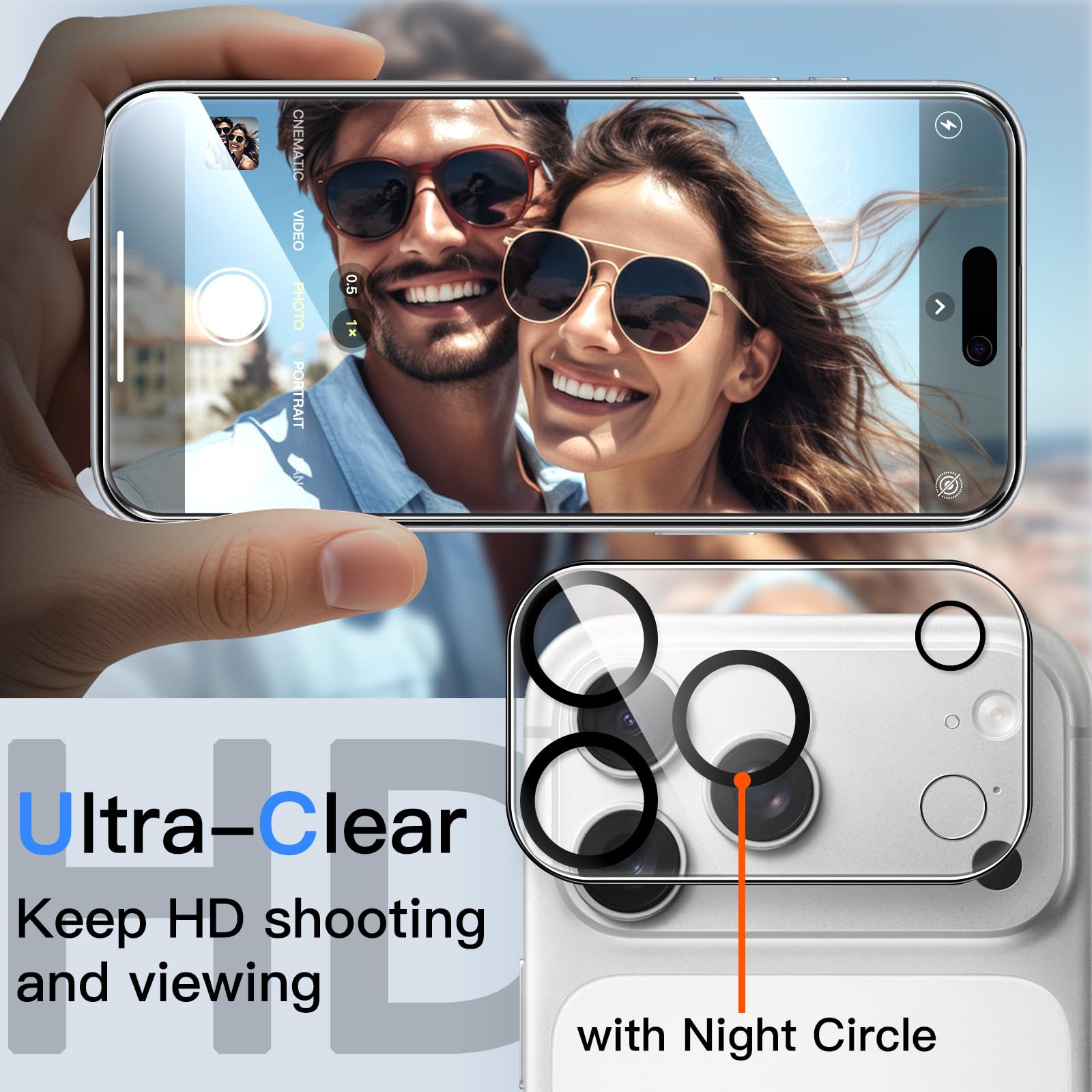 [Night Shooting Mode] The camera lens protector with upgraded built-in night circle allows you to use the flash function normally at night. High light transmittance ensures the original quality of pictures and videos