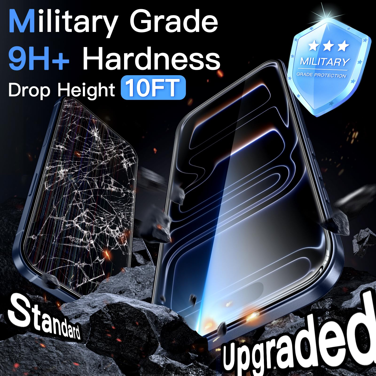 [Military Grade Drop Protection] 9H reinforced glass, more than twice as strong as standard protective film. The reinforced glass edge can effectively protect the edge of the protective film from being damaged or scratched. Military-grade protection, guarding your screen with all-round security