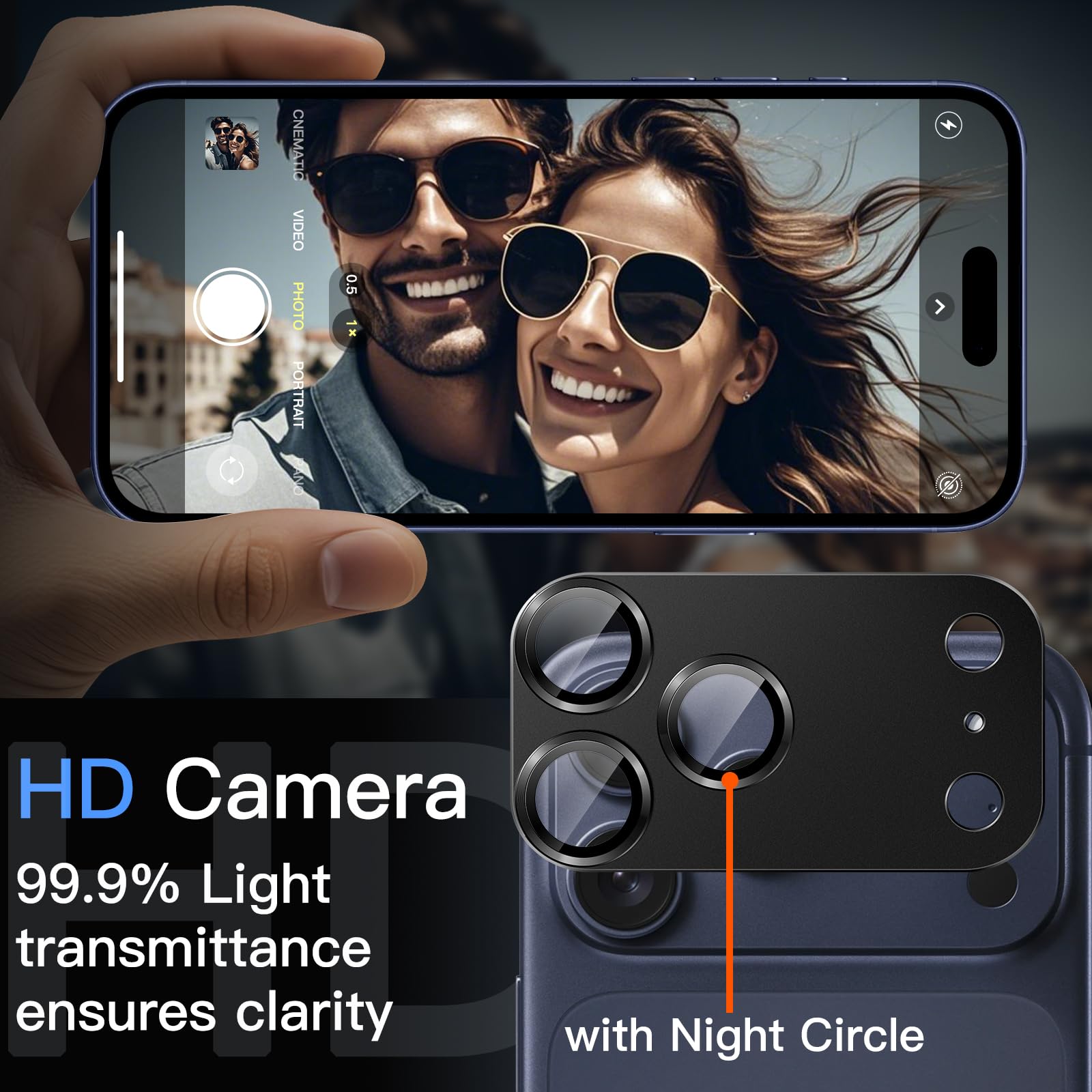 [HD Photography] The clear camera lens covers with AR coating helps reduce reflection and dazzle, providing 99.9% light transmittance and ensuring the original quality of every photo and video you snap