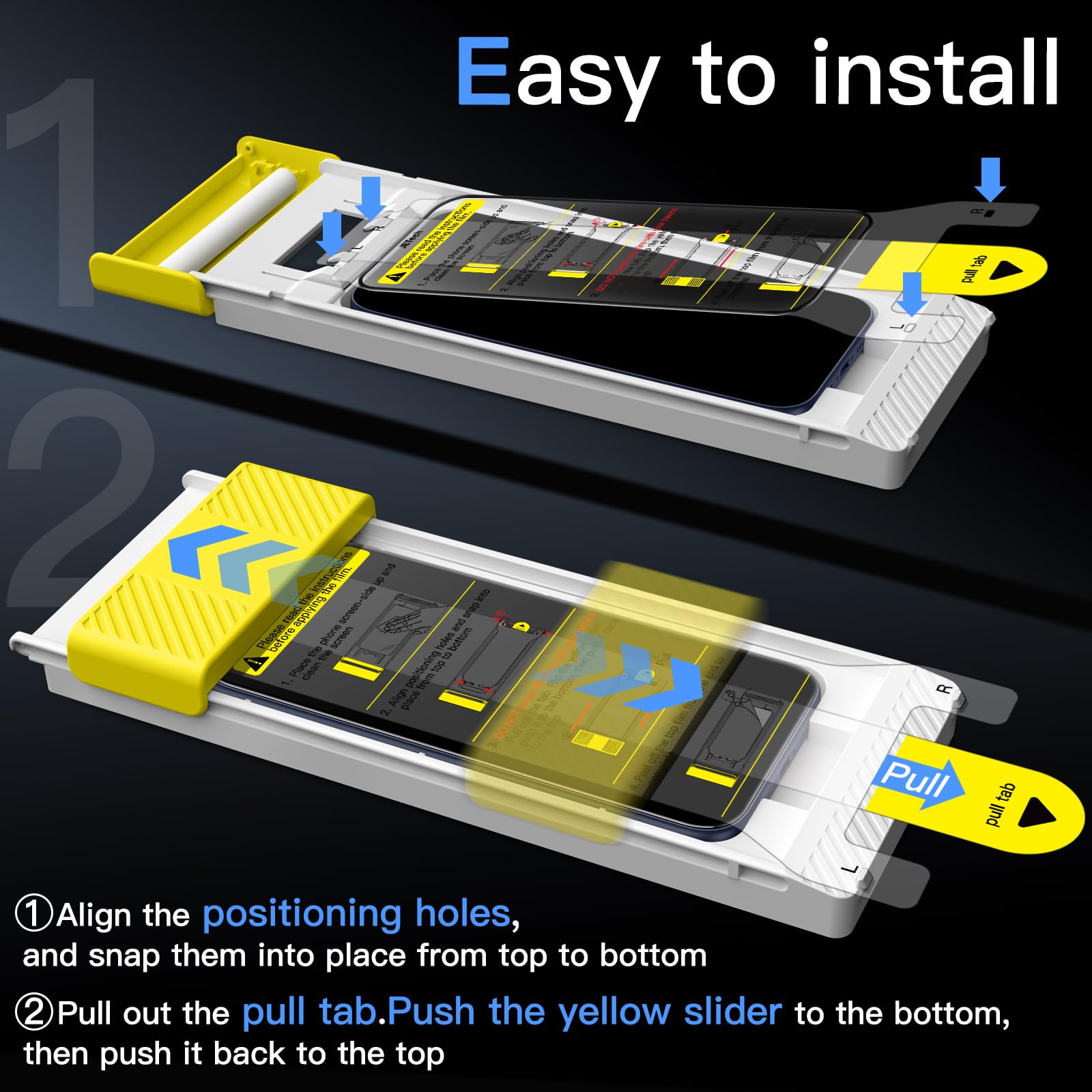 [Easy 3-Step Installation] Apply the screen protector effortlessly in three steps with the locator: Align and secure, Pull out the tab, and Roll to adhere. Automatic air-release eliminates bubbles, even beginners can achieve a perfect fit on the first try