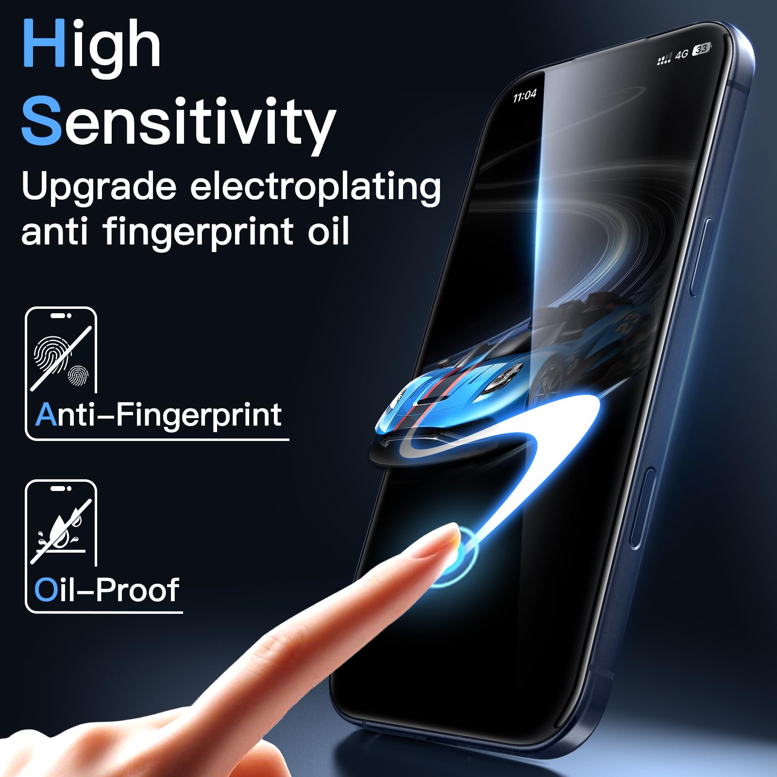 [Upgraded Electroplated Anti-Fingerprint Technology] Features an electroplated AF anti-fingerprint coating that significantly enhances oil and water repellency. Fingerprints and smudges wipe away effortlessly, keeping the screen clean and smooth while maintaining responsive, fluid touch performance