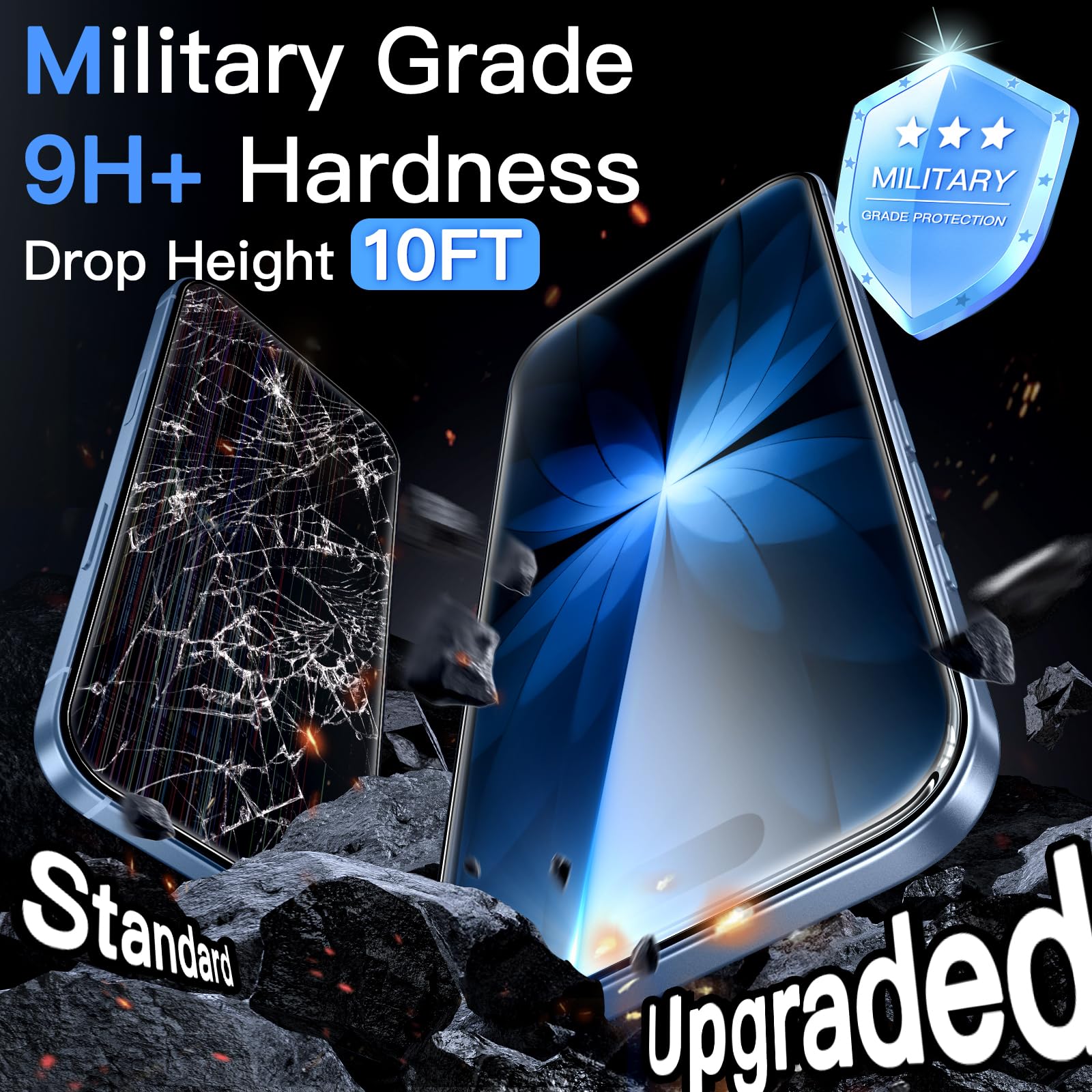 [Military Grade Drop Protection] 9H reinforced glass, more than twice as strong as standard protective film. The reinforced glass edge can effectively protect the edge of the protective film from being damaged or scratched. Military-grade protection, guarding your screen with all-round security