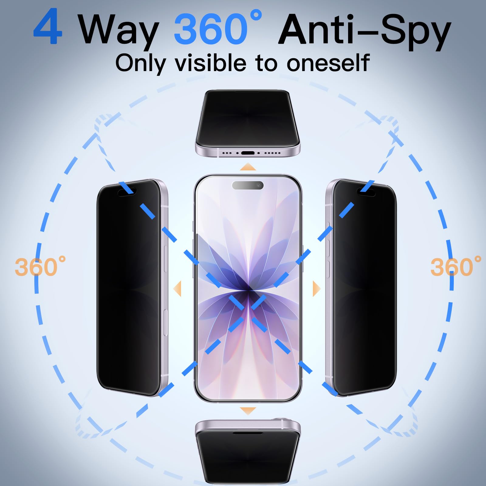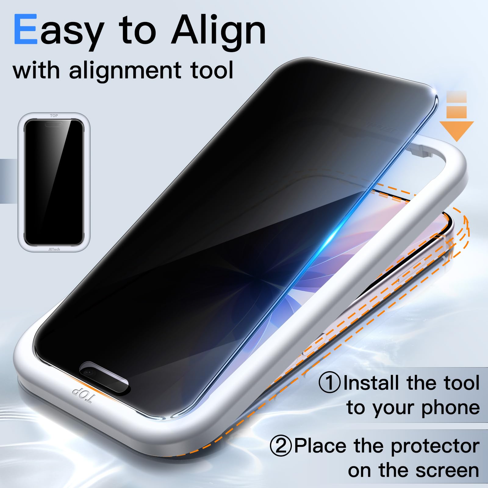JETech 360 Degree Privacy Screen Protector for iPhone 17 6.3-Inch, 4-Way Anti-Spy Tempered Glass Film with Easy Installation Tool, 2-Pack