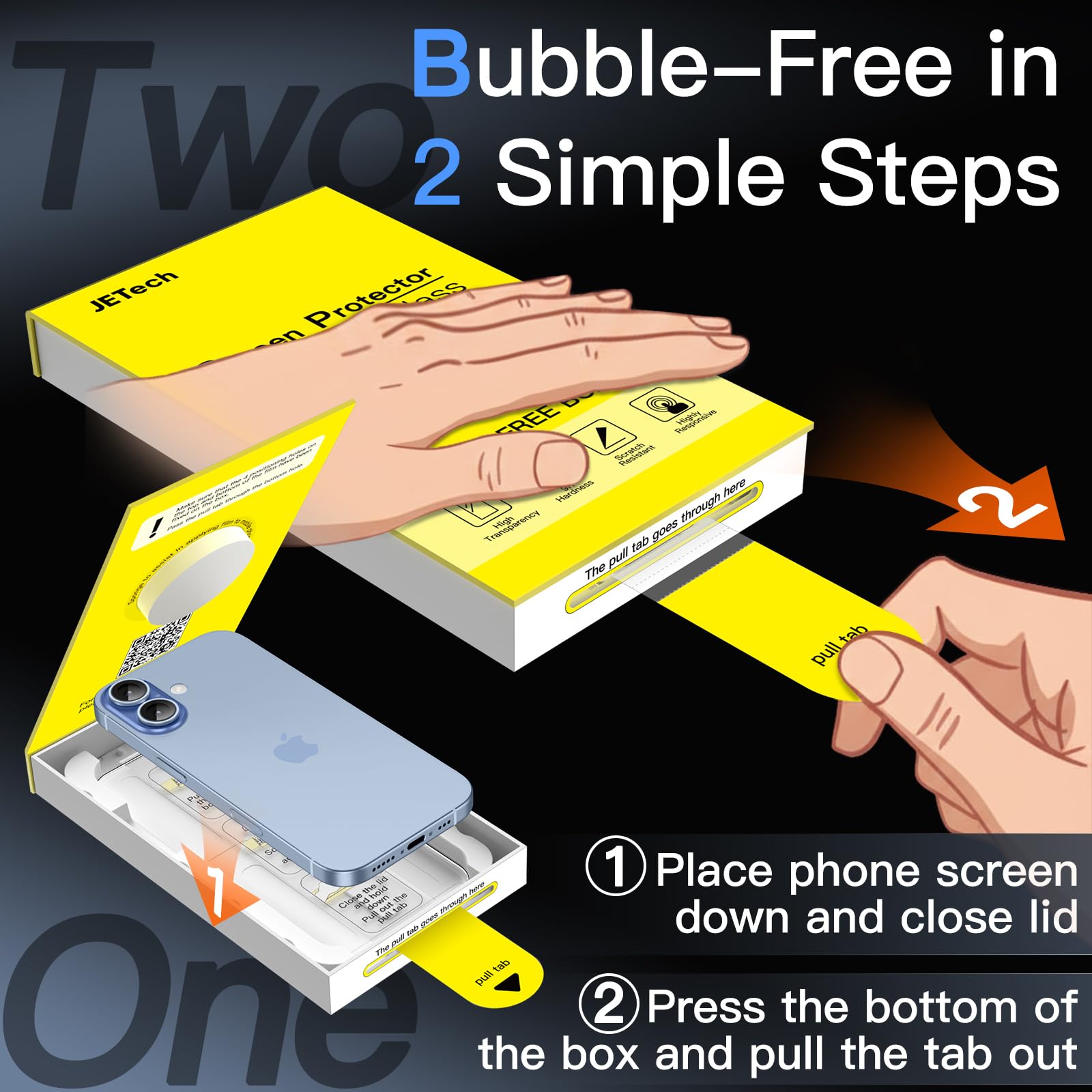 [Super Easy Installation] Simply snap your phone upside down onto the alignment tool, pull out the pull-tab, and the screen protector automatically aligns itself for a quick, bubble-free adhesion