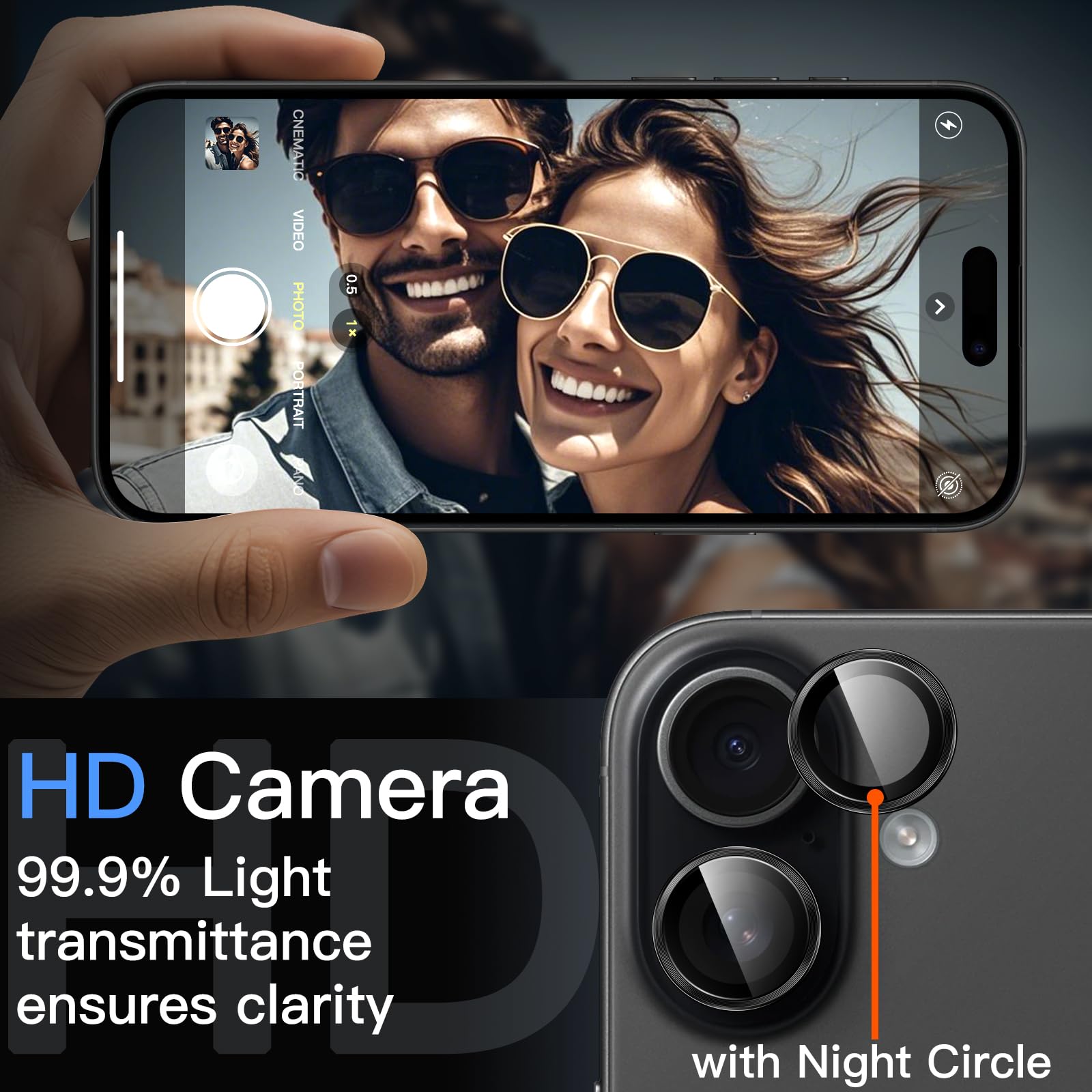 [High Definition] The glass lens protector with 99.99% light transmittance ensures the original quality of photos and videos. Moreover, the oleophobic coating effectively keeps fingerprints, sweat and oil from gathering