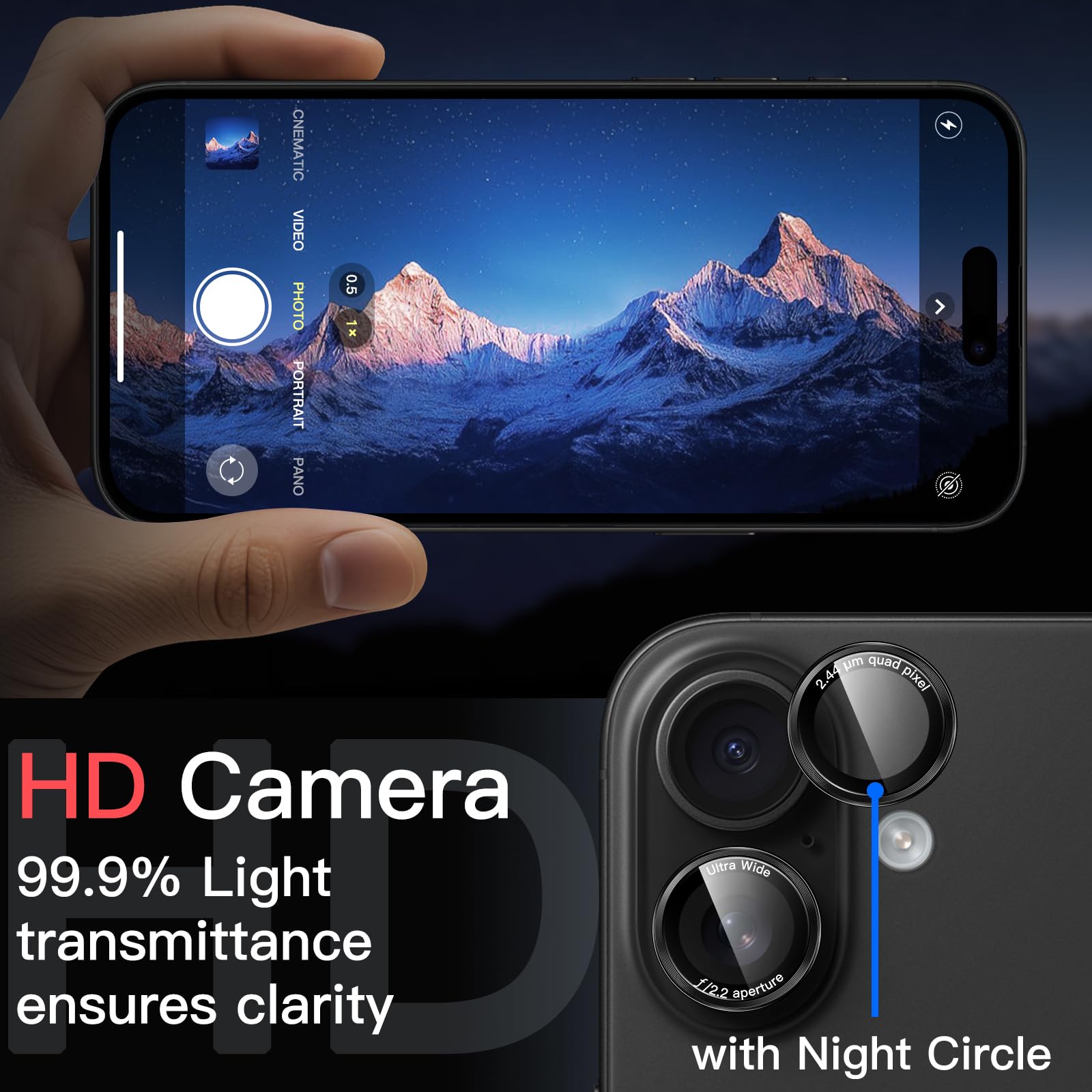 [High Definition] The glass lens protector with 99.99% light transmittance ensures the original quality of photos and videos. Moreover, the oleophobic coating effectively keeps fingerprints, sweat and oil from gathering