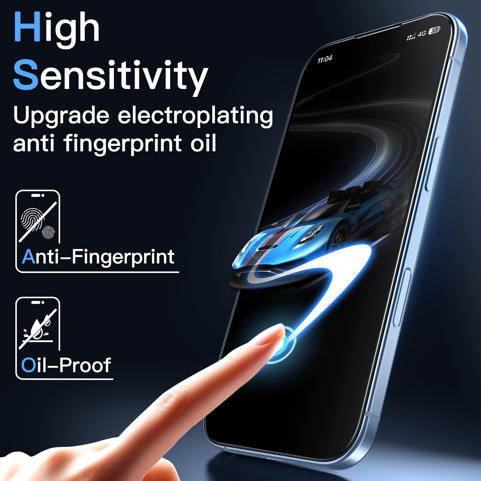 [Upgraded Electroplated Anti-Fingerprint Technology] Features an electroplated AF anti-fingerprint coating that significantly enhances oil and water repellency. Fingerprints and smudges wipe away effortlessly, keeping the screen clean and smooth while maintaining responsive, fluid touch performance