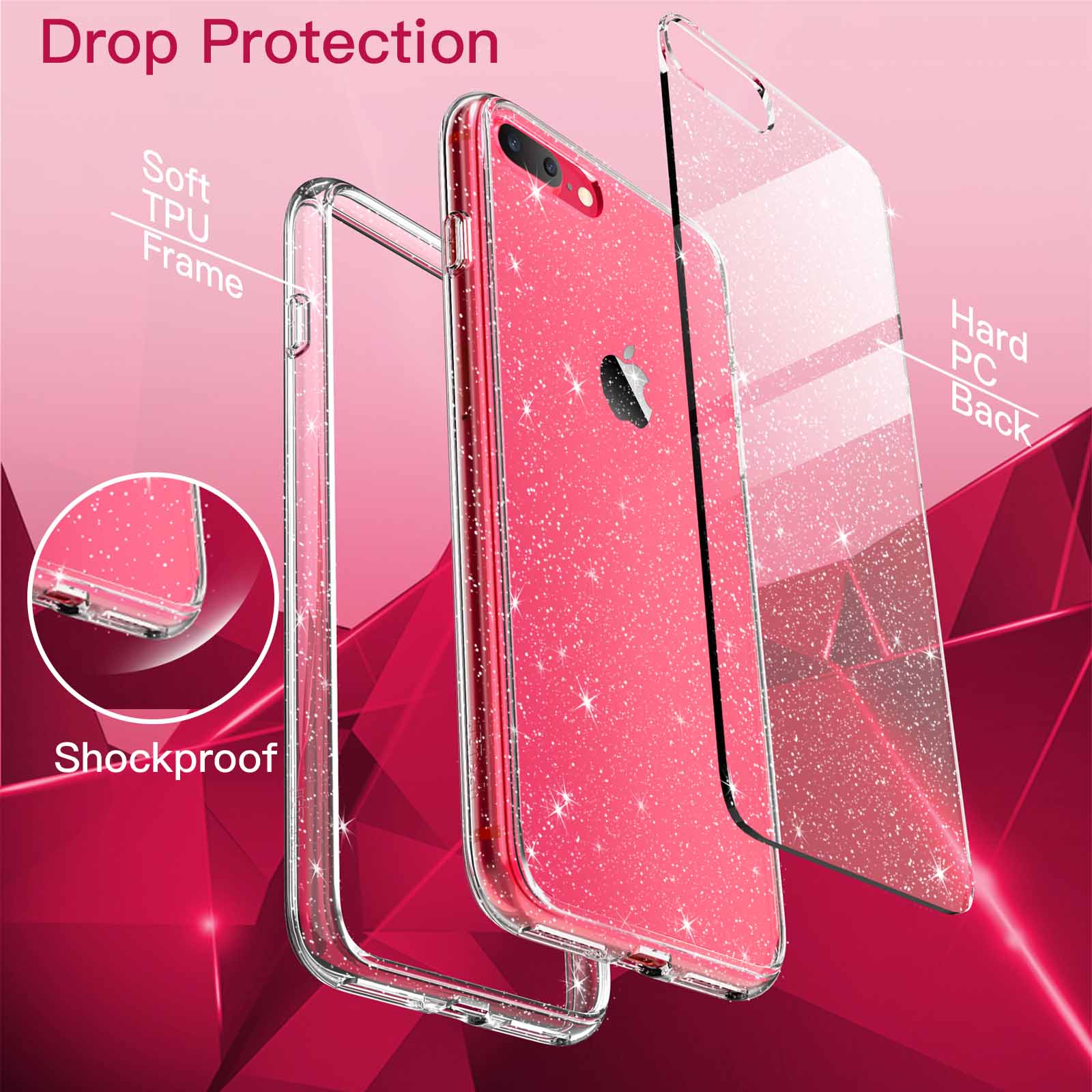 [Long Lasting Glitter] Designed for iPhone 8 Plus/7 Plus, 5.5 inch for women and girls. The embedded eye-catching glitters will never flake off and stay bling, making your phone more attractive and fashionable