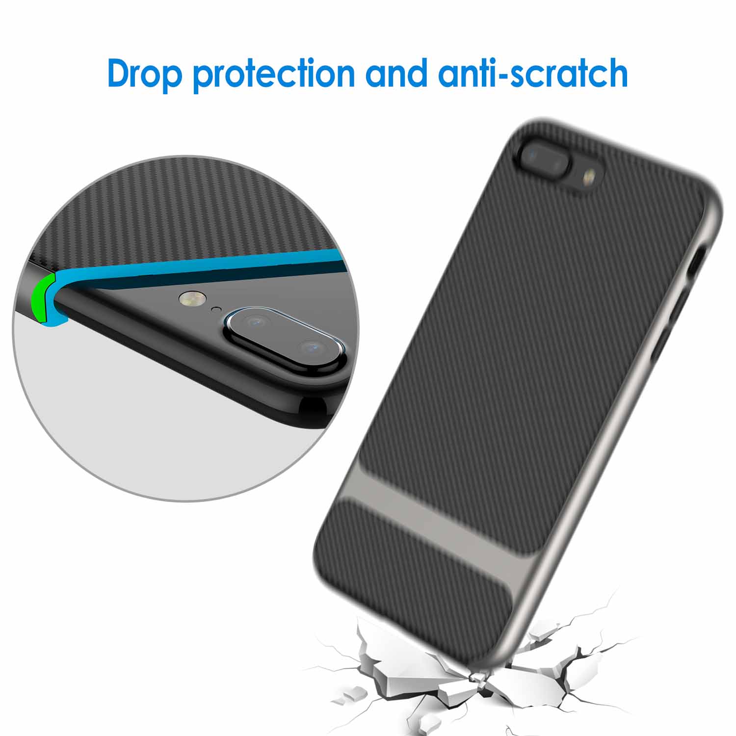 My original case from a different manufacturer cracked. I think it has been used for 5 plus years though. so no complaints. Since I am getting close to getting a new phone. I went for an inexpensive case ( this one) … as for protection seems just as good as my previous case. Fits well ( iphone 7plus) and protects edges pretty well. Looks good. Only thin I would have liked better is if the back of the case had a little more texture or was a little tackier. there is a slight pattern in this case and if it had some texture as in the pattern it would be that much better. But all in all still giving it 5 stars considering how good it is for the price.