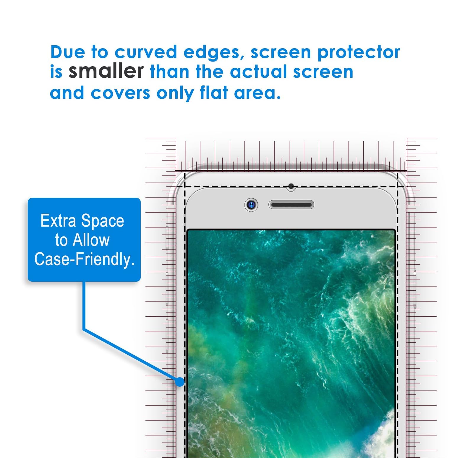 3-Pack. Specifically designed to fit iPhone 8 Plus and iPhone 7 Plus 5.5″ models. (NOTE: Due to the round edge of iPhone, the screen protector will NOT cover the full screen, but only the flat area)