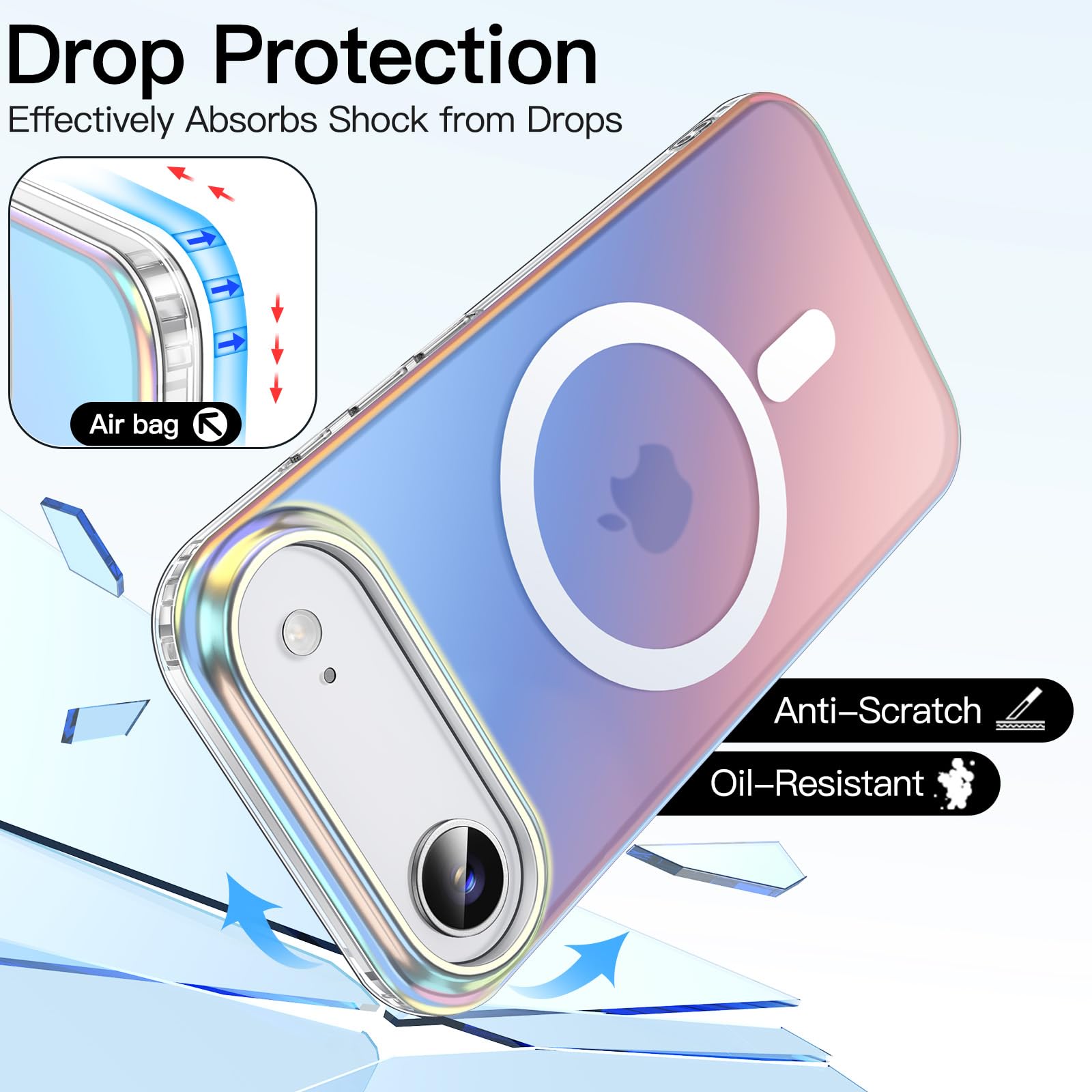 • [Colorful Look] The iridescent back shows different colors when viewed from different angles, making your phone more attractive and trendy