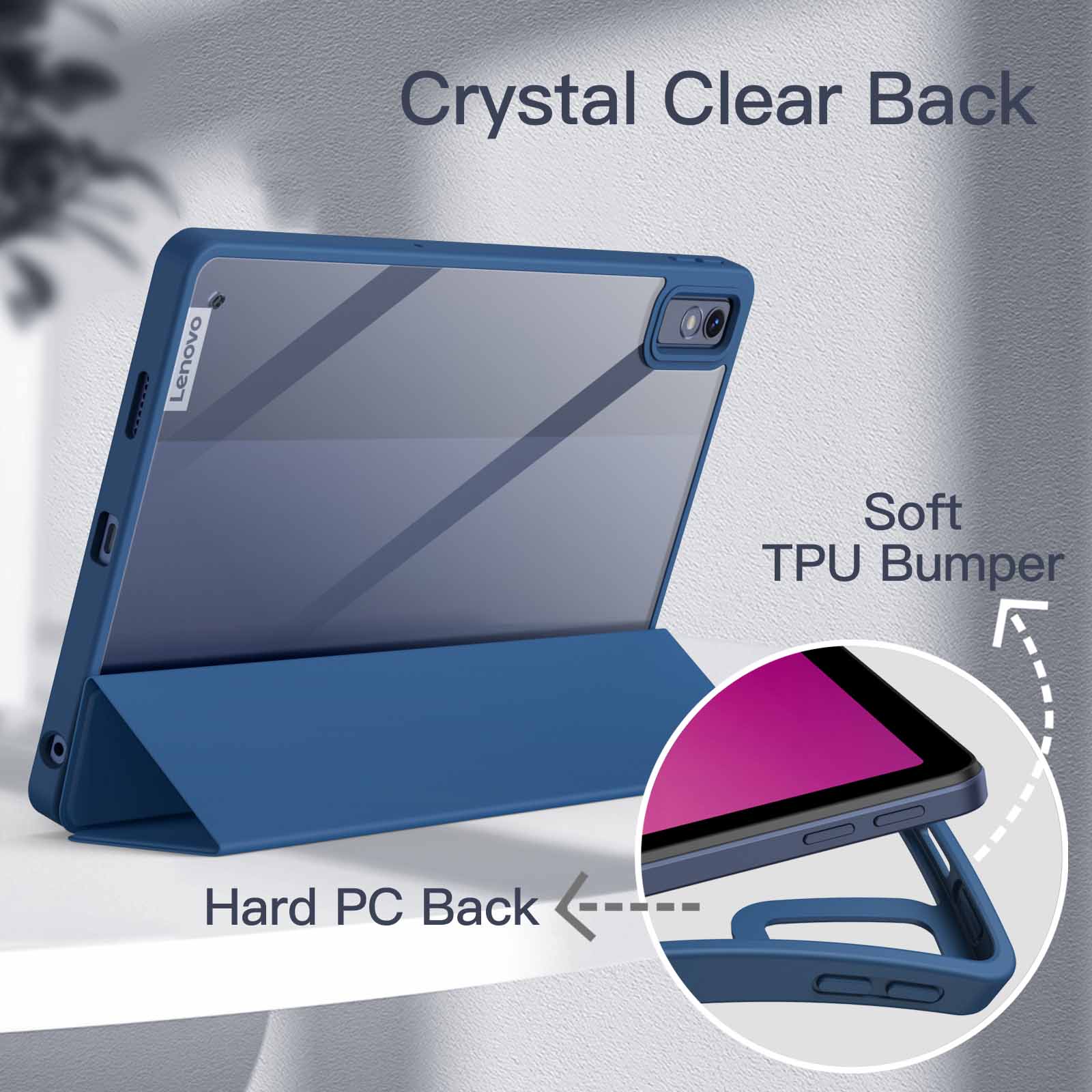 [Transparent PC Back] Built with easy-to-install TPU bumper and hard clear back shell for showing the original beauty of your device, as well as a PU front cover, this full body case highly protects your Tablet against drops and scratches