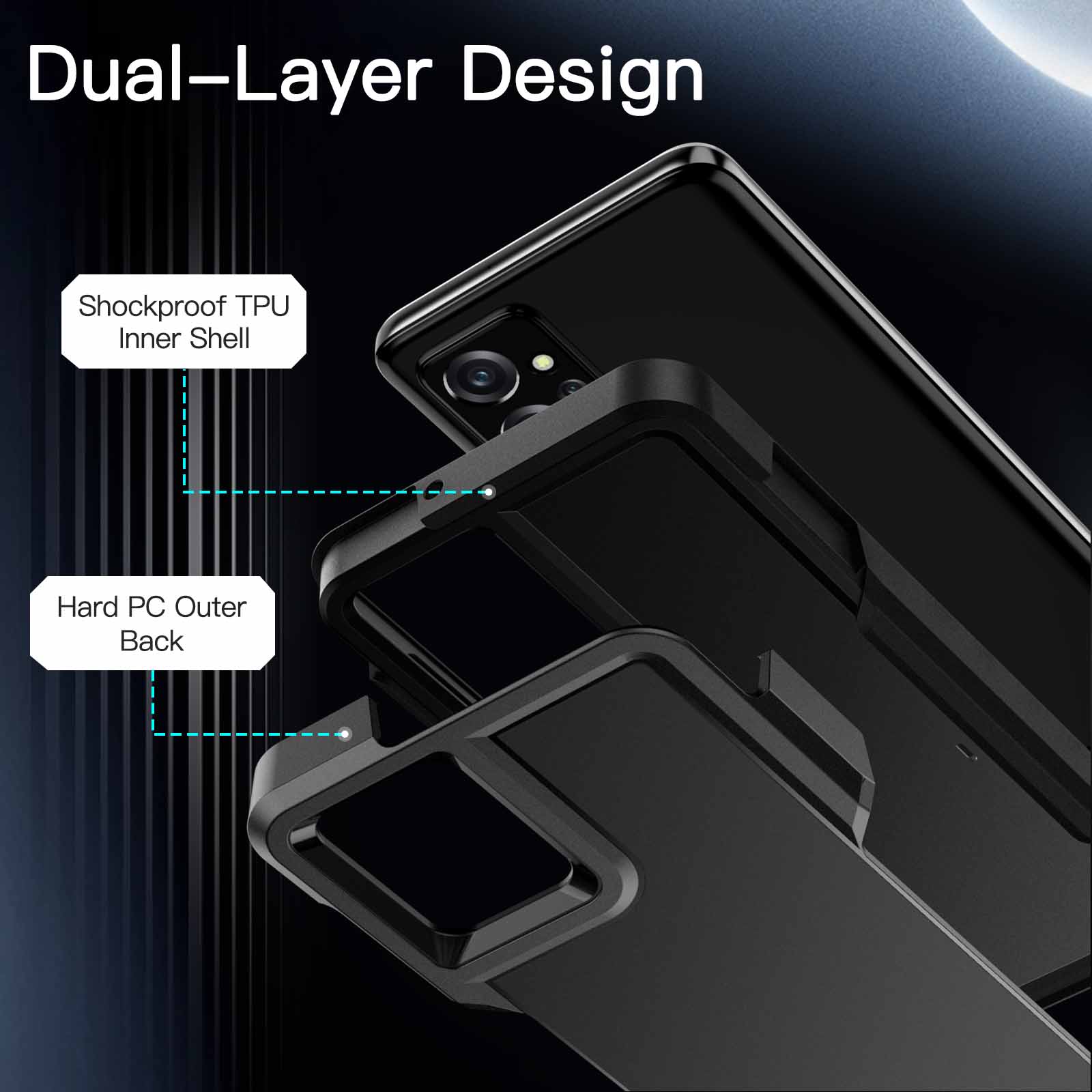 [Heavy Duty Protection] This solid case engineered in a dual-layer structure performs well in protecting your phone from severe drops and bumps. It is made from a shockproof inner TPU shell and a hard PC outer back with reinforced corners