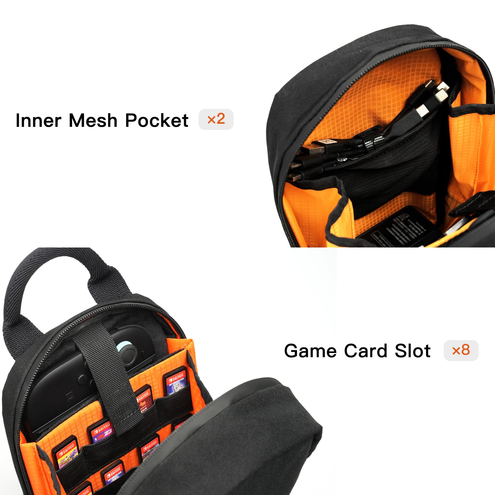 [Multi-Functional Storage] Equipped with 8 independent card slots, it can safely store game cards. Meanwhile, 2 small mesh pockets can be neatly placed for small accessories such as cables and earphone