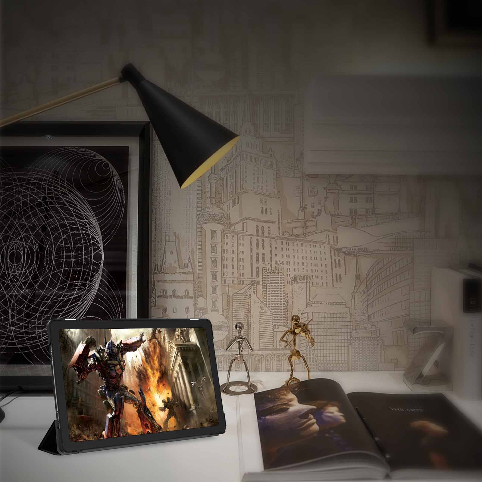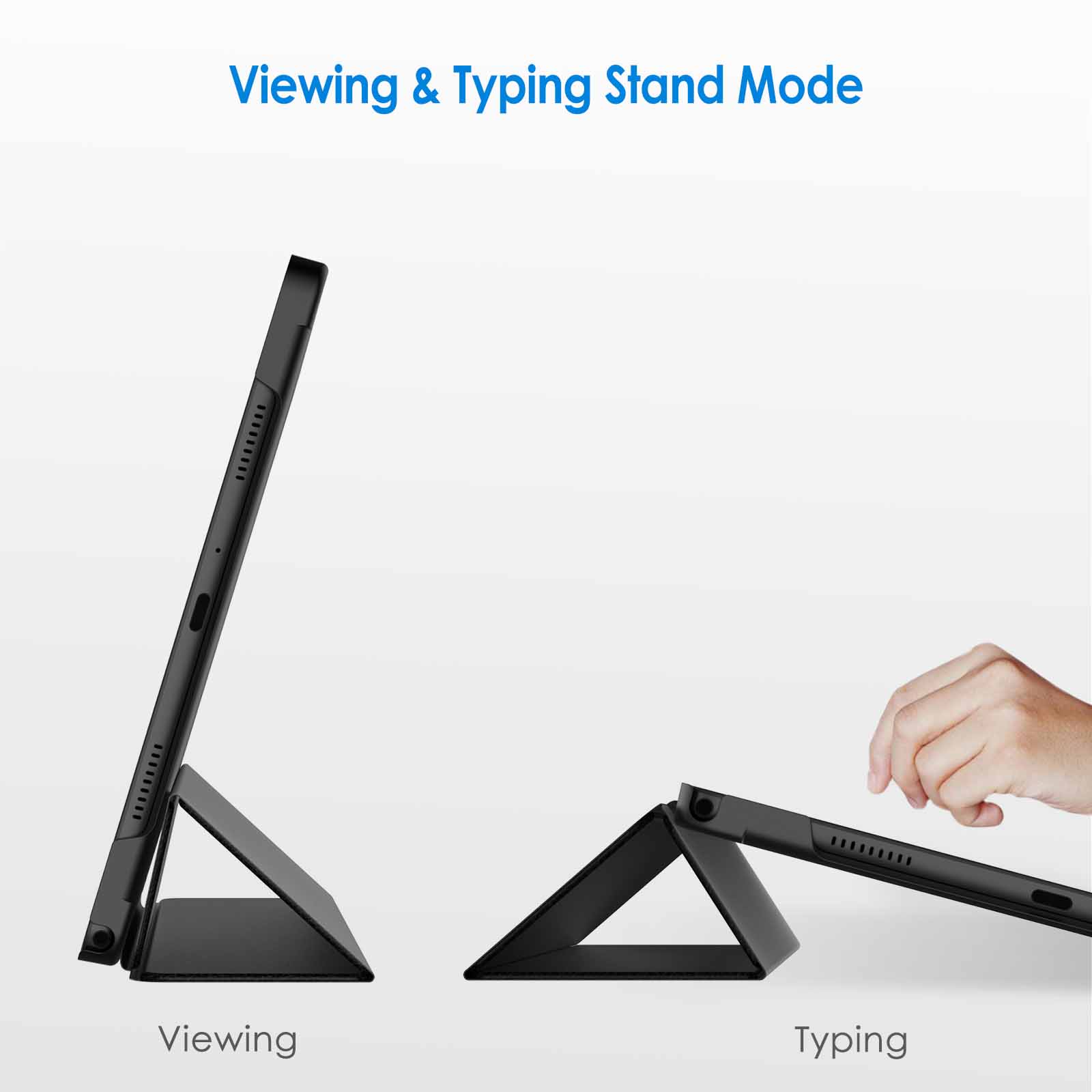 [User-friendly] Tri-fold stand makes it possible to adjust different angles to meet your viewing/typing needs. Magnetic cover supports auto wake/sleep function