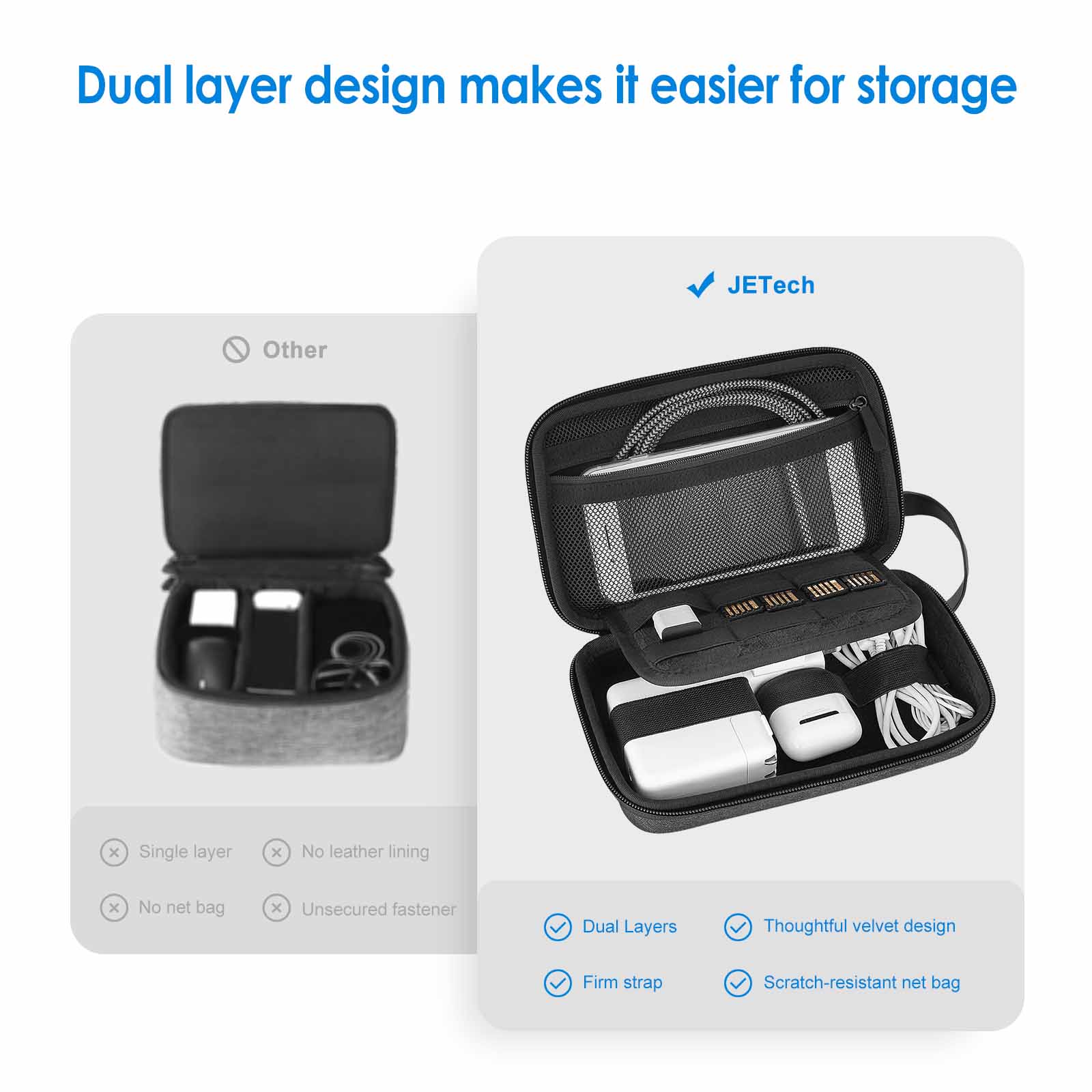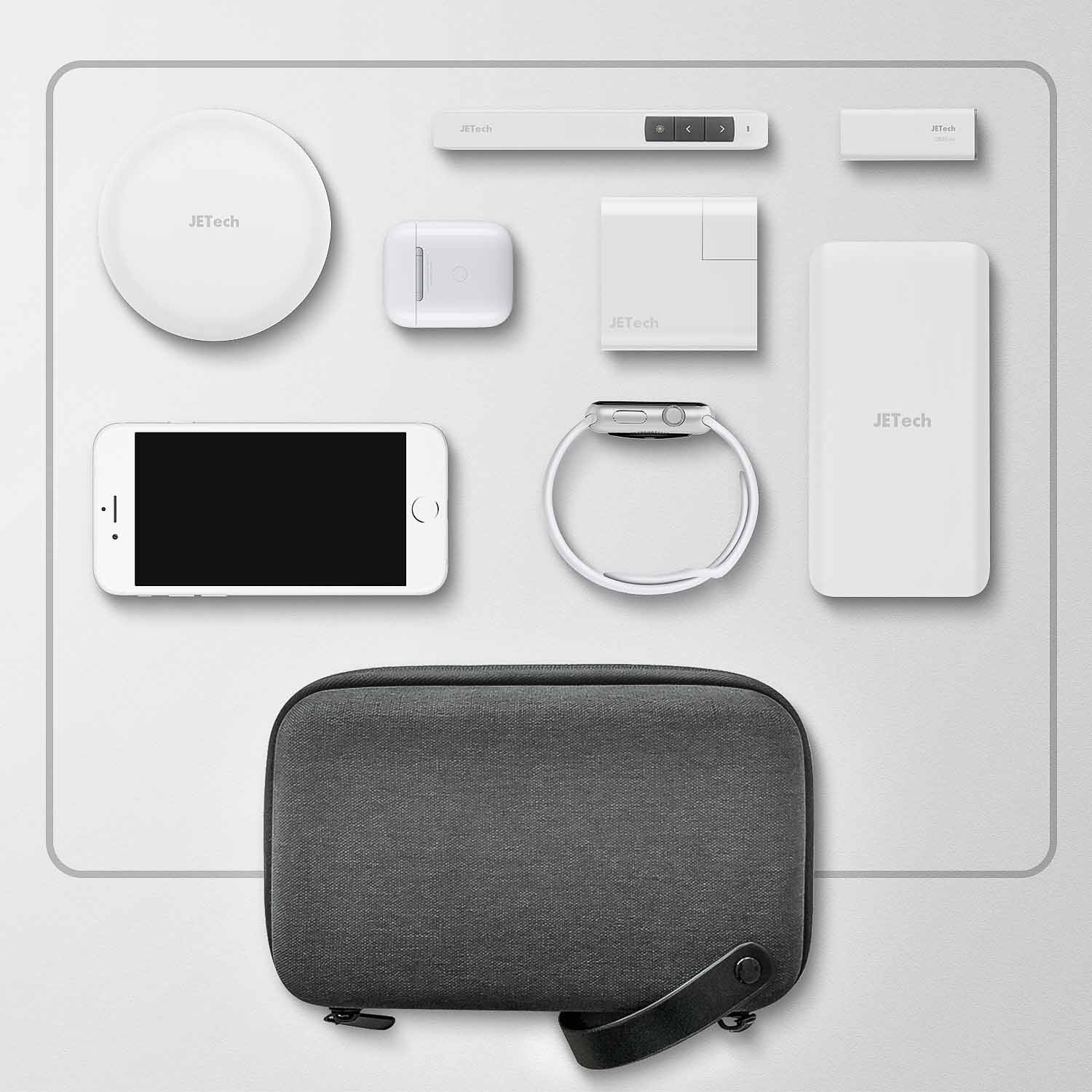 JETech Electronics Accessories Organizer Hard Carrying Case with Double Zipper and Carrying Strap, Portable Travel Gadget Bag for Cables, SD Card, Charger, Hard Disk, Grey