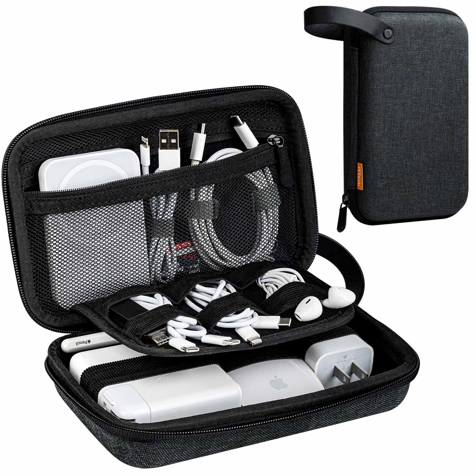 [Easy to Carry] The portable leather carrying handle allows you to take this travel accessory bag easily and comfortably at any time. The smooth double zips allow the case to be opened easily, making it much easier to put in or take out the gadgets